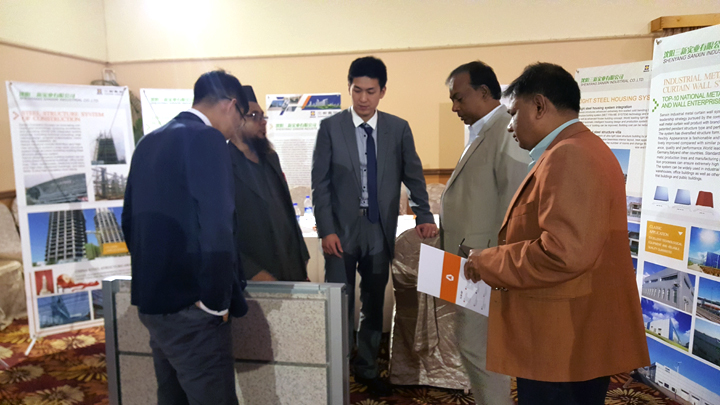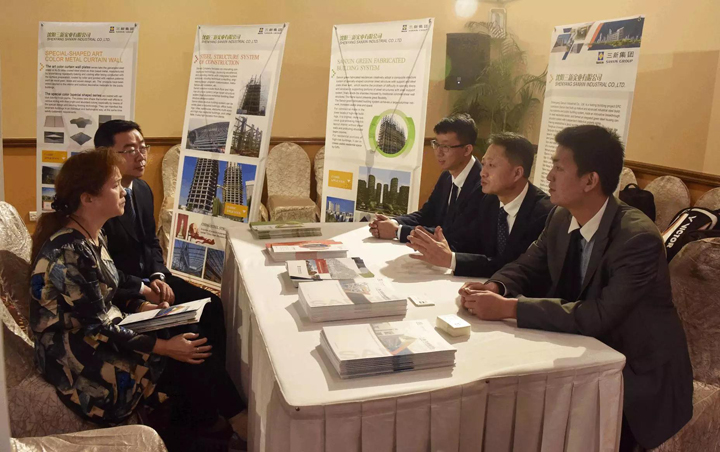 在推介會上,來自中孟的近70位企業(yè)代表就孟加拉國市場拓展、企業(yè)產品和項目合作進行了面對面的交流對接,涉及基建、能源、電力等領域。會議期間,三新集團展位受到廣泛關注。獨具特色的公共建筑、民用建筑及工業(yè)建筑產品吸引了眾多孟加拉國客戶及廠商,并進行了咨詢及多場洽談會晤,簽訂了多項合作及銷售協(xié)議。同時,公司還與中國電建、中國能建、中國石油、中國東北電力第三工程有限公司、中成進出口股份有限公司等國內知名廠商進行了合作洽談,強強聯(lián)合,共同助力開拓孟加拉市場。