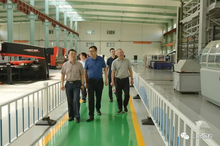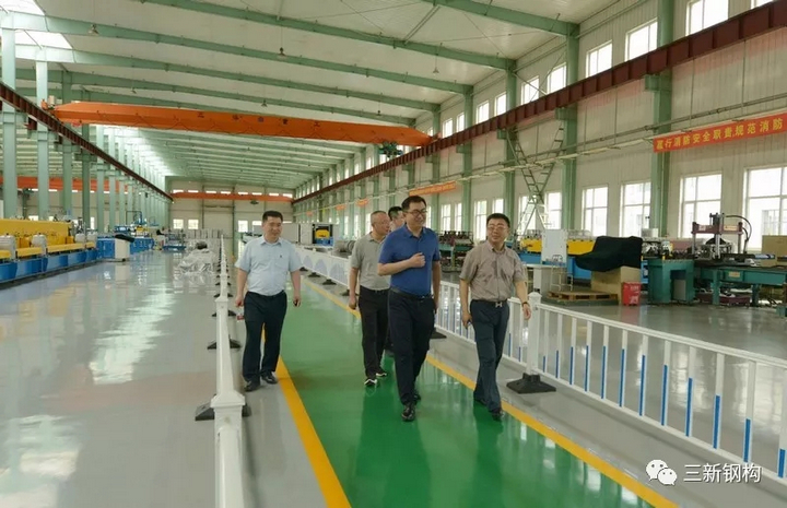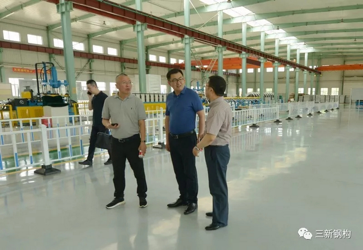 2019年7月3日,盛夏沈城,風(fēng)和日麗。遼寧省住建廳曹桂喆副廳長、建筑業(yè)改革處王曉偉處長、張慶峰副處長一行來到三新集團調(diào)研。
