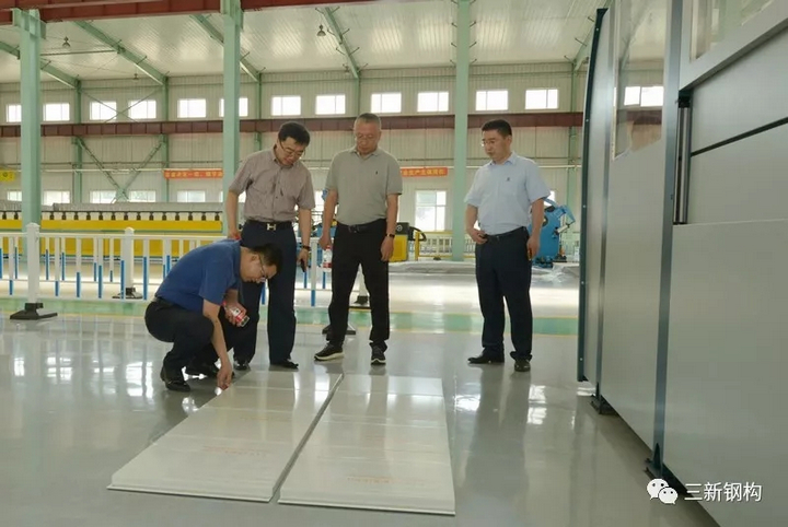 省廳領(lǐng)導(dǎo)在公司總經(jīng)理洪長禧的陪同下參觀了公司裝配式建筑及幕墻生產(chǎn)基地和生產(chǎn)線,并對三新裝配式建筑實體模型和部品進行了詳細(xì)的了解。曹廳長、王處長對三新裝配式鋼結(jié)構(gòu)建筑體系及先進的生產(chǎn)裝備給予了高度的評價,認(rèn)為產(chǎn)品設(shè)計理念、制作工藝、安裝水平達(dá)到國內(nèi)領(lǐng)先。