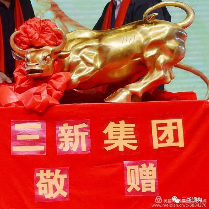 本屆校友會(huì)的承辦方,沈陽三新集團(tuán)總經(jīng)理,校友會(huì)副會(huì)長(zhǎng),本屆年會(huì)籌備組組長(zhǎng)洪長(zhǎng)禧先生代表沈陽校友特為宗會(huì)長(zhǎng)及芯源微電子贈(zèng)送銅牛一尊!祝芯源微電子財(cái)源廣進(jìn),牛市長(zhǎng)紅!