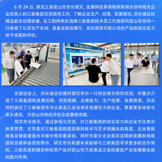 同根同源,共謀發(fā)展——黑龍江省密山市市長胡文一行赴三新集團調(diào)研交流工作