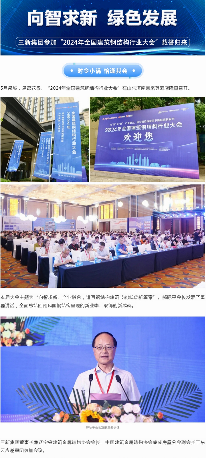 向智求新、綠色發(fā)展——三新集團(tuán)參加“2024年全國(guó)建筑鋼結(jié)構(gòu)行業(yè)大會(huì)”載譽(yù)歸來(lái)